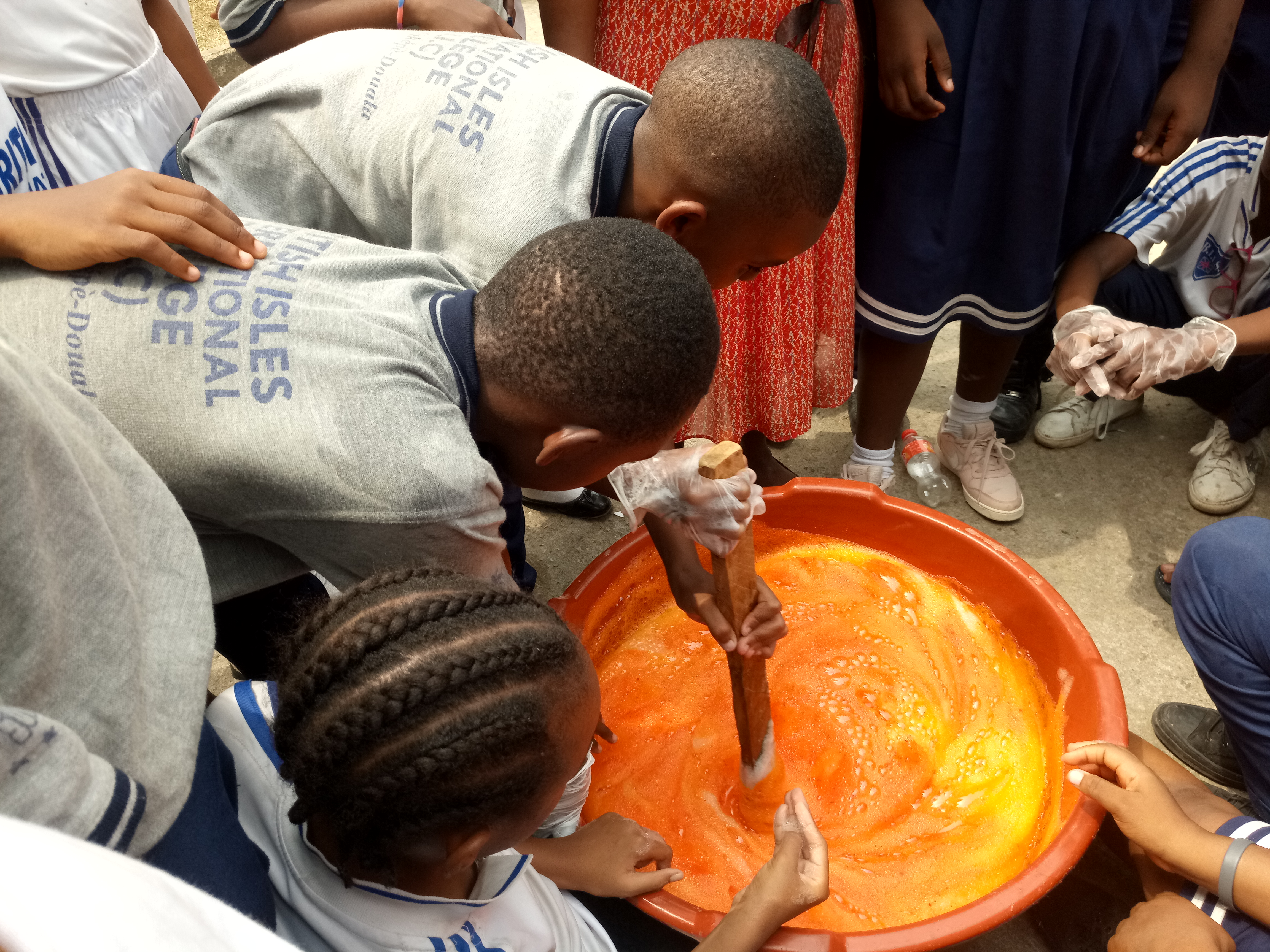 En outre, le vendredi 07 février, nous avons reçu la visite des élèves de l’école primaire et secondaire British Isles School, qui dans le cadre de la semaine de la jeunesse, a souhaité passé une après-midi avec nos enfants. Cette journée fut le point culminant de notre semaine, car entre les ateliers de fabrication de savon liquide, de confection de bracelets, de babyfoot, etc., il ne fut pas aisé d’encadrer une centaine d’enfants! Heureusement, avec l’aide des professeurs, la visite s’est bien déroulée et s’est terminée après une petite collation.